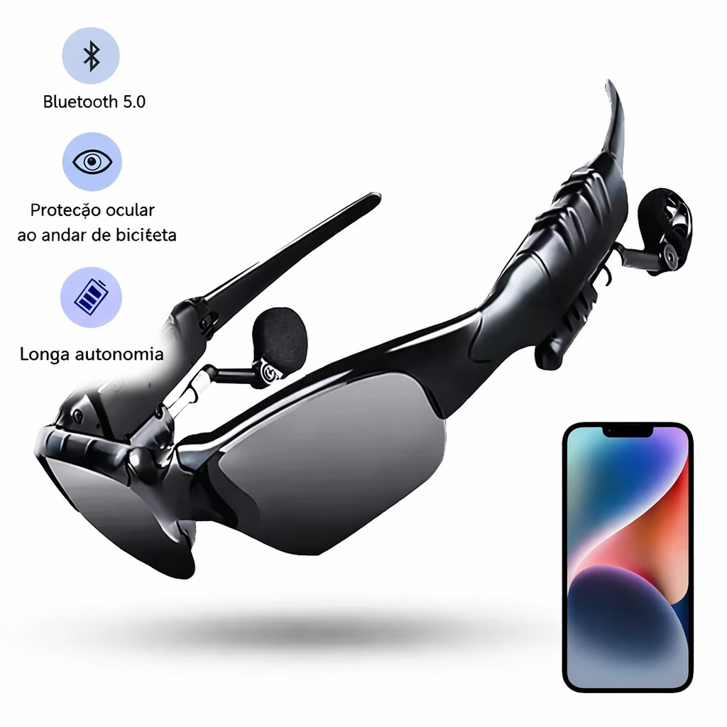 Transforme sua experiência no pedal com os Óculos de Sol com Bluetooth 5.0, a combinação perfeita entre proteção, tecnologia e conforto para quem pratica atividades ao ar livre, ciclismo, motociclismo, MTB Bike, corrida, equitação.