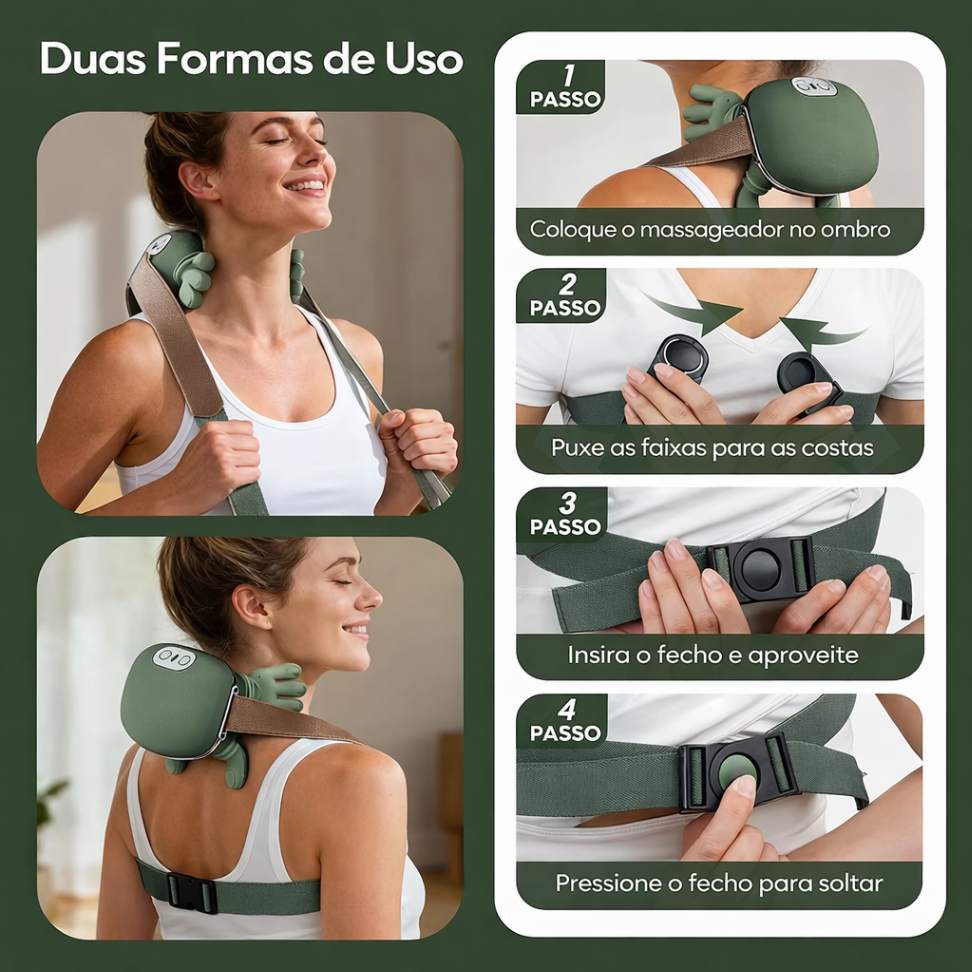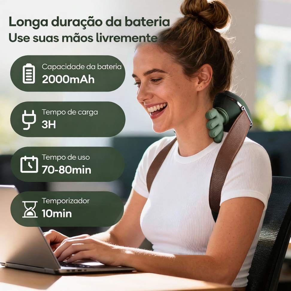 ✔ Massageia profundamente músculos do pescoço, ombros e costas