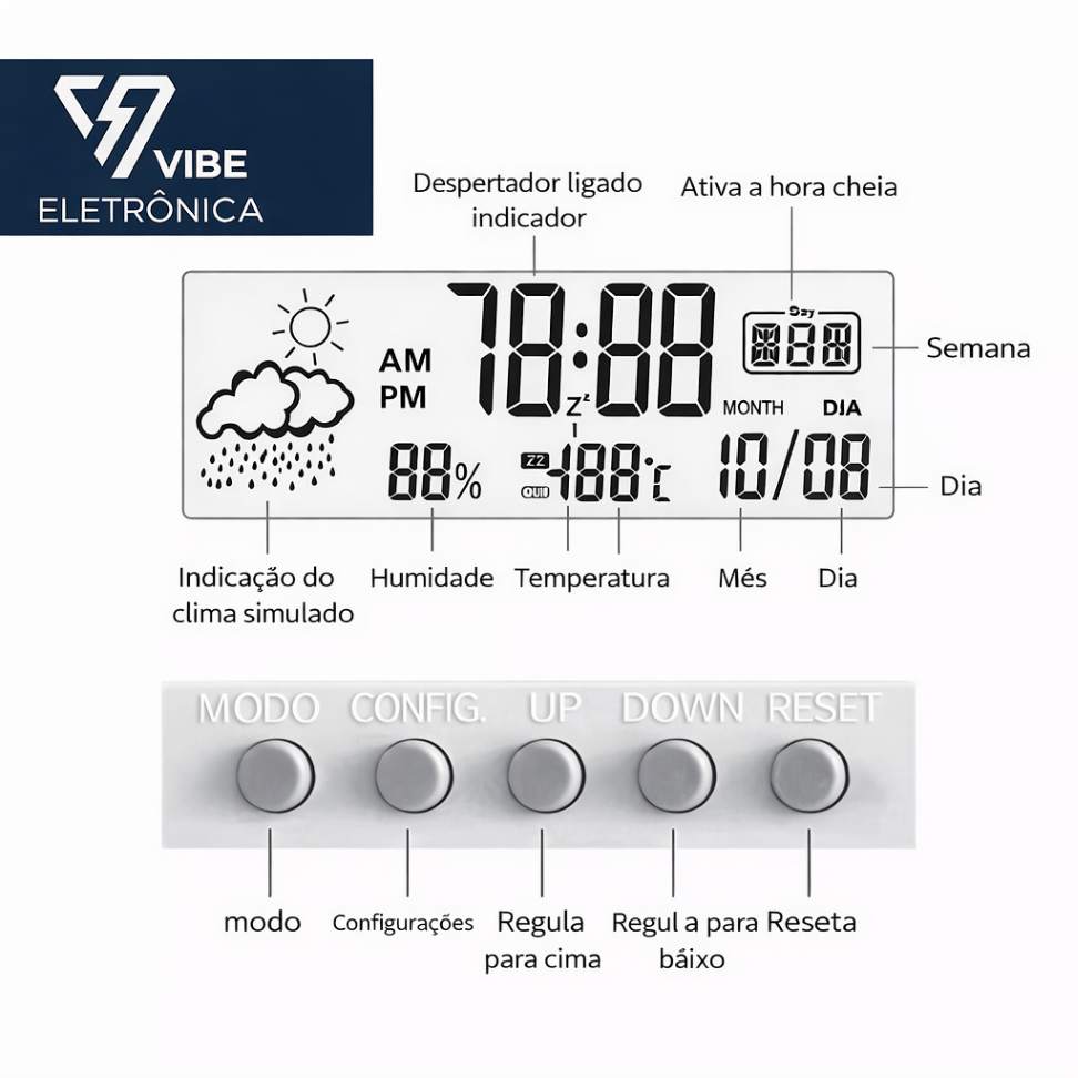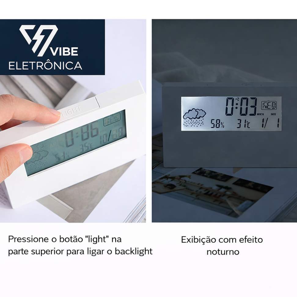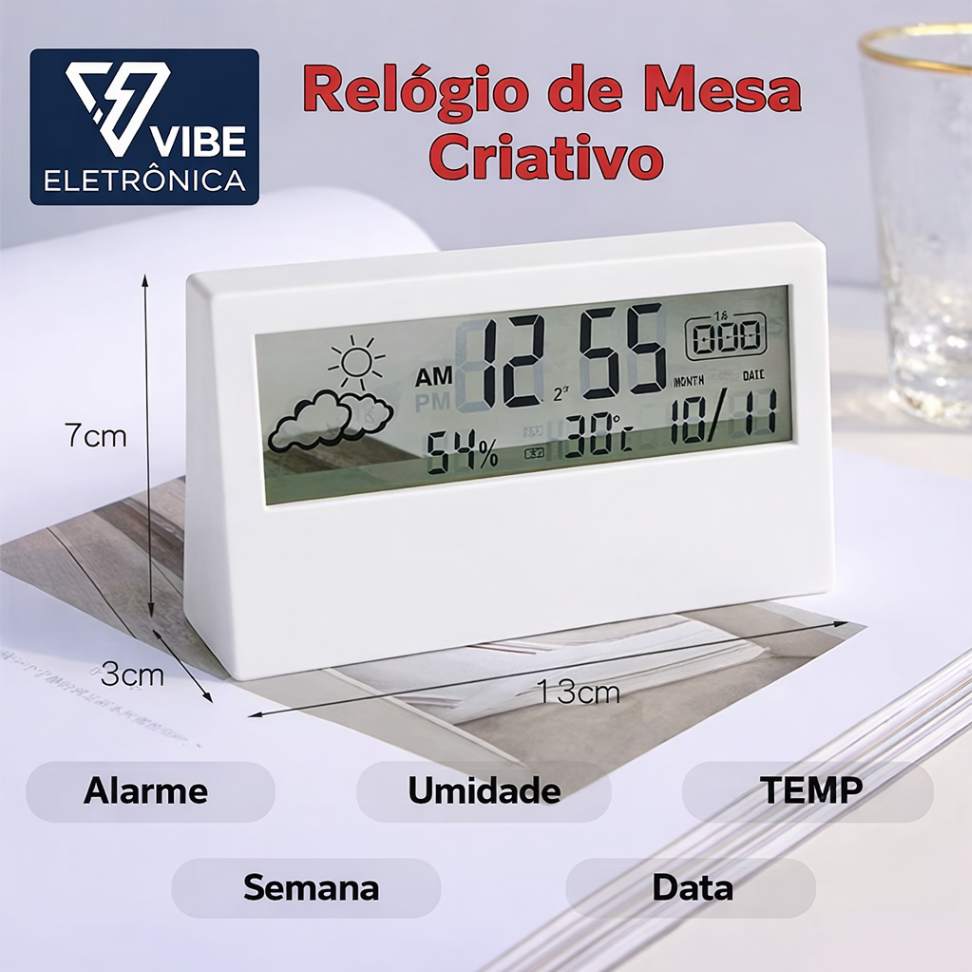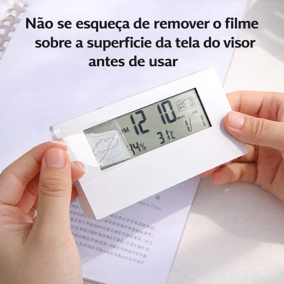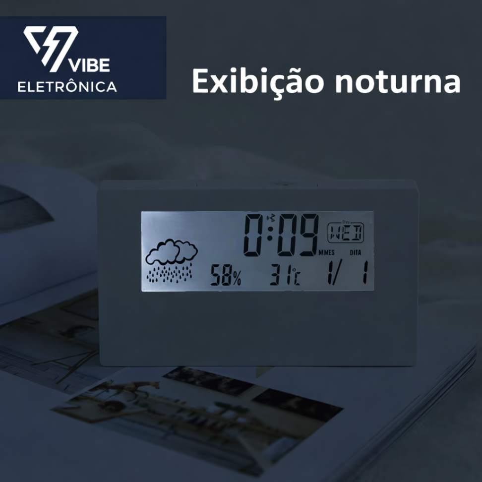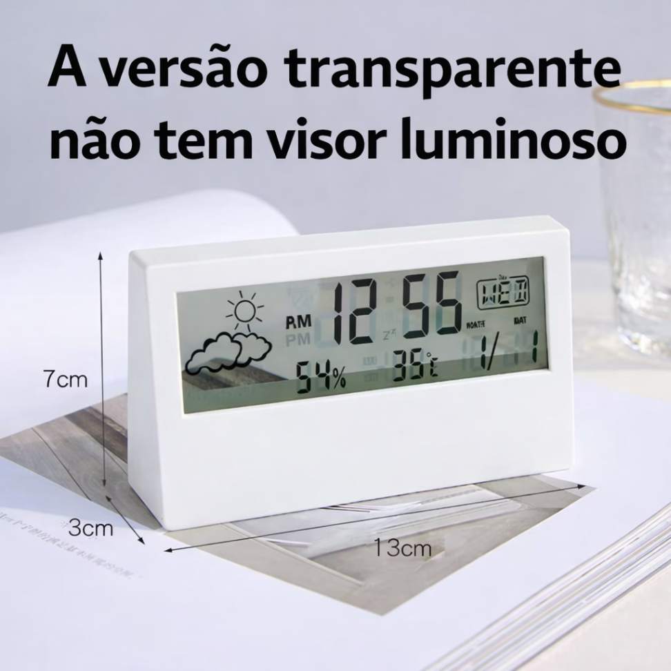Este não é apenas um relógio. É uma mini estação meteorológica para ambientes internos, que une funcionalidade, estética e praticidade em um único produto.