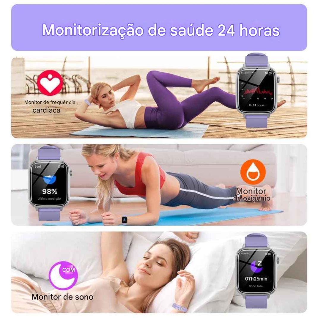 Monitor de: Frequência cardíaca; oxigênio no sangue; sono; pressão arterial;